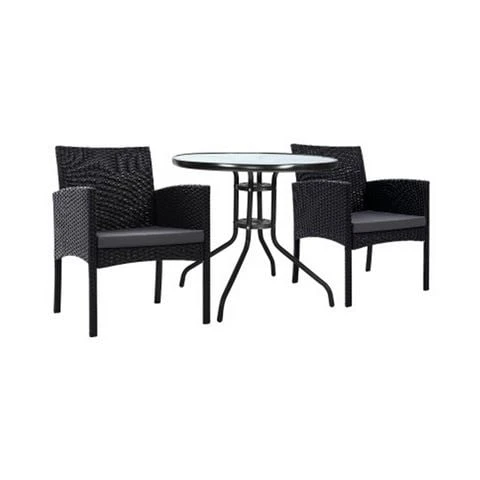 Enjoy the pleasant outdoors or have a nice chat with friends over a cuppa with Gardeon Outdoor Bistro Set. With its chic and trendy profile, the set comes with a glass-top table and two wicker chairs.